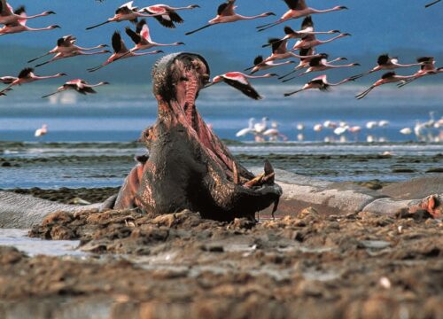Kenya masai mara lake Naivasha flamingosAfter breakfast, proceed on a game drive in the nearby Lake Nakuru national park which has a fantastic array of bird-life including flamingos, white pelicans and marabu stork, all water birds that breed in the lake’s alkaline waters. you may spot white rhino and the rare Rothschild’s giraffe that has five horns instead of the usual three and clear instead of spotted shanks. A visit to the baboon cliff offers a scenic panorama of the lake below, surrounded by a vast tract of euphorbia and acacia forest. Makalia falls within the park are an additional attraction. After lunch, drive to lake Naivasha for dinner and overnight at the lodge.